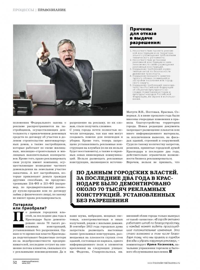 Публикация статьи "Излишки наружной рекламы" Павлюк В.А. в журнале Реальный Бизнес